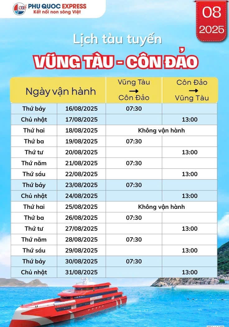 Taucaotocthanglong xin thông báo tới Quý khách hàng lịch tàu Thăng Long Vũng Tàu - Côn Đảo 8/02025: