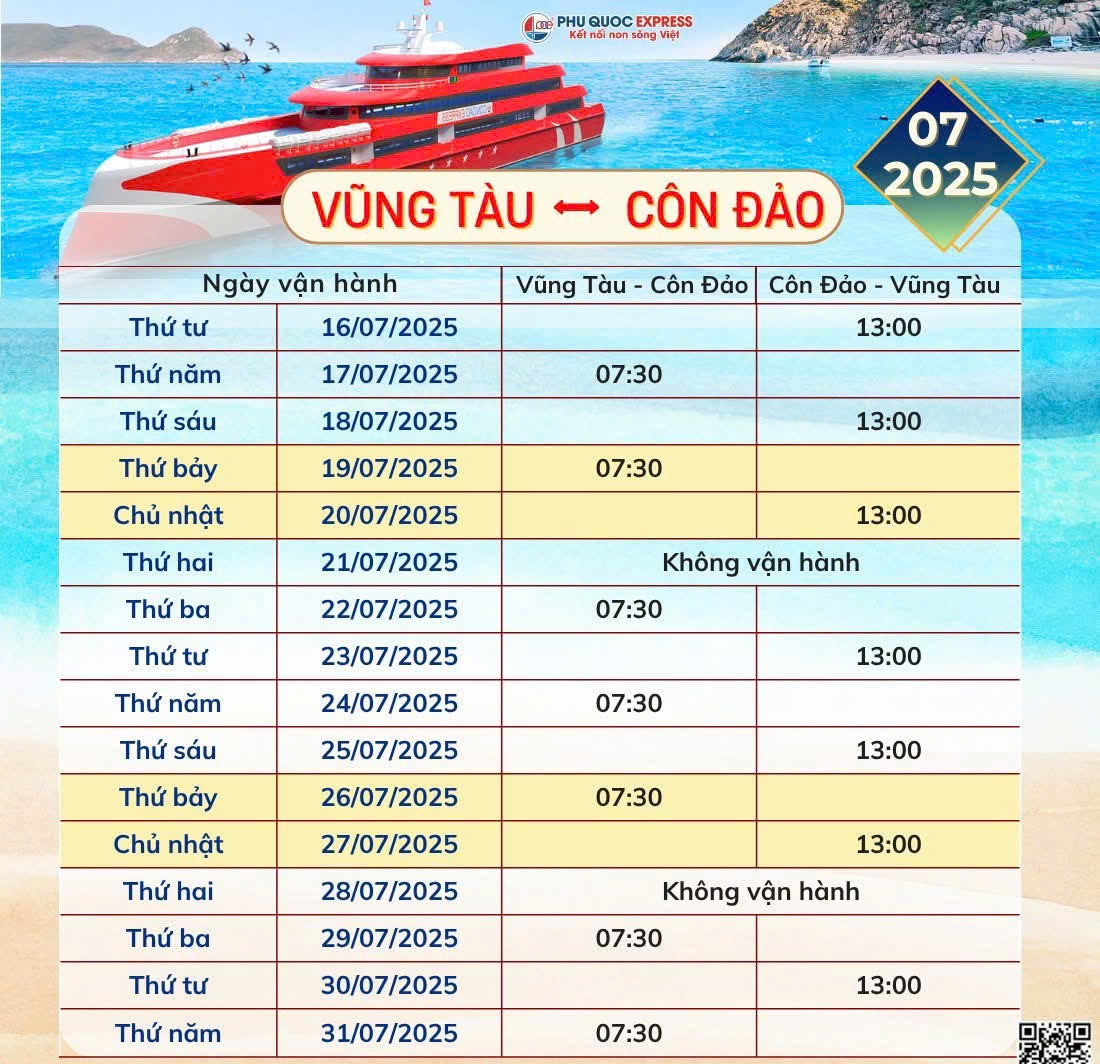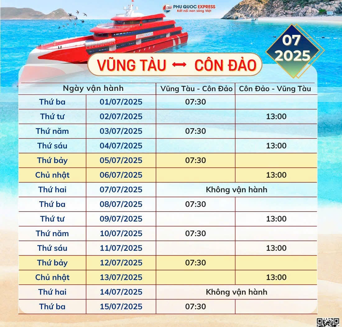 Xin thông báo tới Quý khách hàng lịch tàu Vũng Tàu - Côn Đảo 7/2025 (tàu Thăng Long)