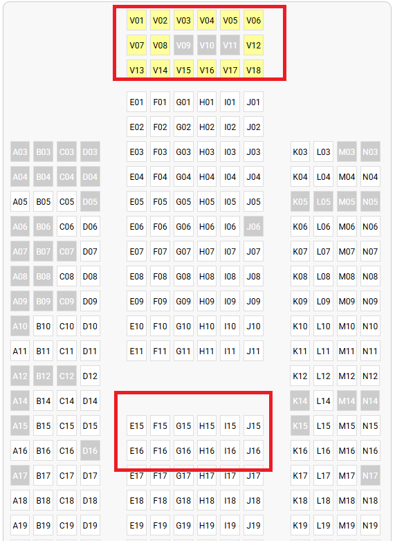 Bước tiếp theo đặt vé tàu Sa Kỳ - Lý Sơn hành khách lựa chọn vị trí ghế ngồi trên tàu Phú Quốc Express theo sơ đồ hiển thị: Ghế phổ thông (màu trắng), ghế VIP (màu vàng). Lưu ý vị trí ghế hiển thị màu xám là vé đã hết và màu đỏ là vé đang lựa chọn.